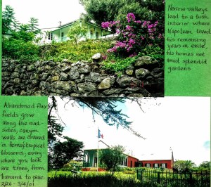 The following day we rented a car and toured the 47 square mile island with cruising buddies. Zigzagging our way along narrow roads and through quiet tidy villages with beautiful gardens and groves of mango and avocado trees, it was a surprise to observe so many contrasting environments. Hilltops surrendered vistas of verdant valleys and abandoned flax fields peppered by volcanic slopes where jagged monoliths sat in watchful quietude.