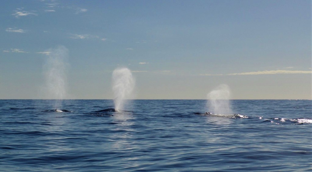 The first 5 days out from Reunion we made excellent progress under mostly clear skies, 10-20 knot breezes, and 1-2 meter seas. Our third day, east of Madagascar, was extraordinary. Relaxing beneath light-wind sails, we first spotted eight 20-ft black false killer whales spouting and feeding. A short time later we came within 40 feet of a pod of dark blue-gray sperm whales. Lined up and floating on the surface, just chilling. Perhaps napping after lunch? For the remainder of the afternoon we kept a close eye out, not wanting to disturb these magnificent creatures. Lots of spouting in the distance, but no more close encounters.